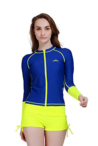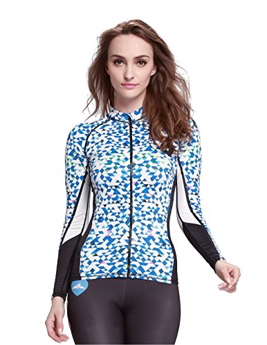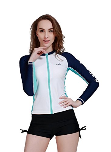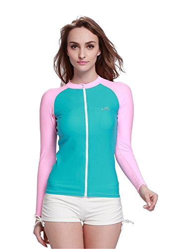 Lemorecn Rashguard Long-Sleeve Full Zip-Up Rush Guard for Women (D53, Tag L = US M)