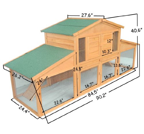 -. Binding : Lawn & Patio -. Brand : Pawhut -. EAN : 0700729269916 -. Feature : Front of living area and run opens for easy access to pets / Run area provides open feeling for pets / Multiple ramps allow animal's entry to inner box / Includes all necessary parts but assembly is required / Overall Size: 90.6"L x 27.6"W x 39.4"H -. Label : Pawhut -. Manufacturer : Pawhut -. Model : D2-0050 -. MPN : D2-0050 -. PackageQuantity : 1 -. PartNumber : D2-0050 -. ProductGroup : Lawn & Patio -. ProductTypeName : OUTDOOR_LIVING -. Publisher : Pawhut -. Size : Large -. Studio : Pawhut -. Title : Pawhut 91" Deluxe Large Wooden Bunny Rabbit Hutch / Chicken Coop w/ Outdoor Run -. UPC : 700729269916
