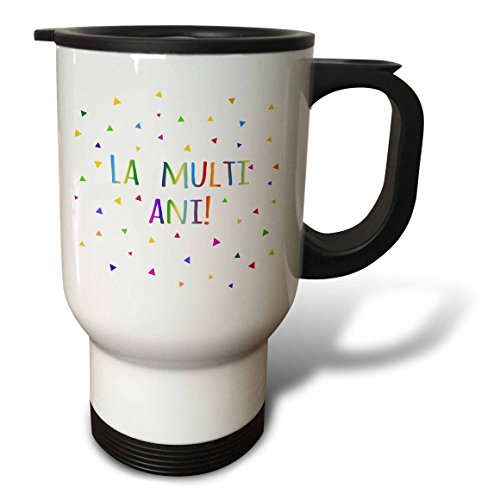 3dRose tm_202050_1 "La Multi Ani. Happy Birthday In Romanian Colorful Rainbow Text Romania Stainless Steel" Travel Mug, 14 oz, Natural