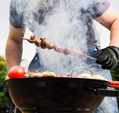 • 100% BURN FREE OVEN MITT SET - Up to 500 DEGREE HEAT - Our top quality professional oven mitts are fully fireproof and the bbq accessories you need to safely cook or grill hot food. But don't just take our word that they're the best bbq gloves on the market. Our customers say our bbq mitts & gloves are the best hot pads and oven mitts they've ever owned, and give them a five star rating time and time again.