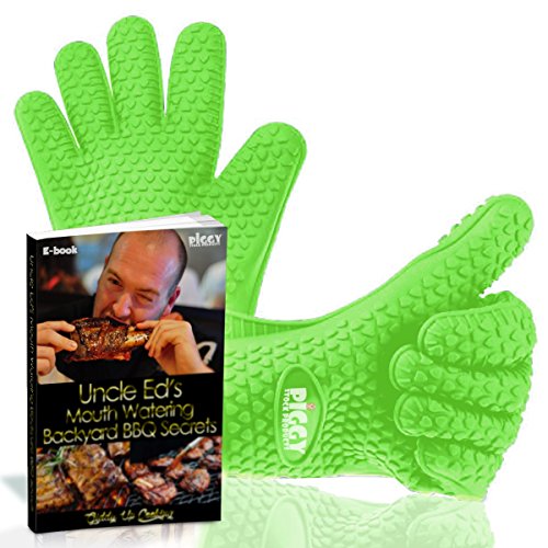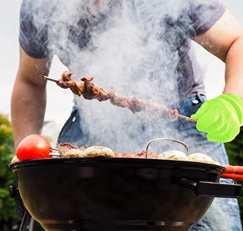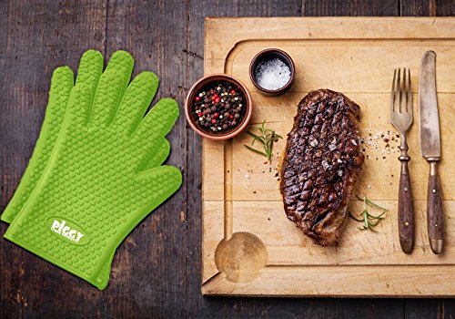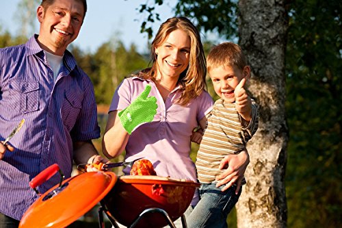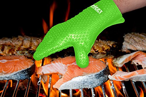 • GREEN SILICONE BBQ GLOVES COOKING or GRILLING - Grill Gloves silicone strong - without fear of scalding splashes or burns from meat juice or boiling hot cooking pots. Incorporate safety and fun into bbq or oven dishes. Slide on our bbq cooking gloves, meat that's hot juicy and dripping simply protect you near your hands or wrists.