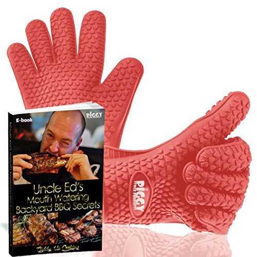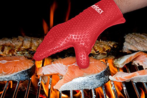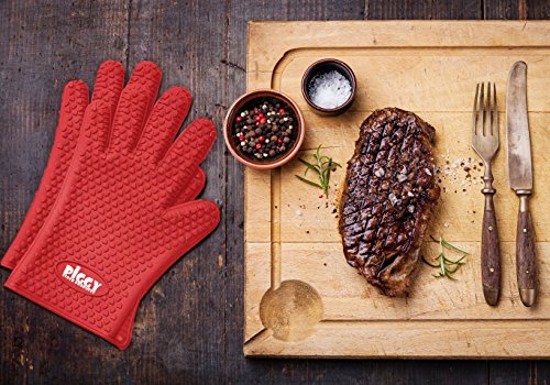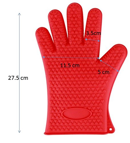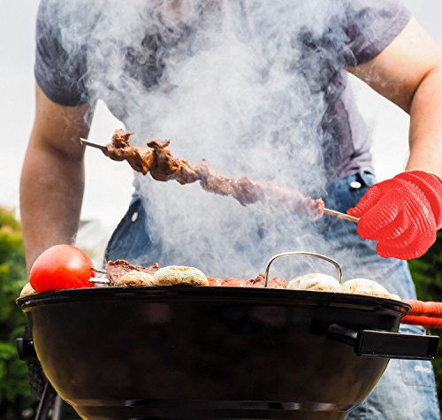 • RED SILICONE BBQ GLOVES To PROTECT YOUR HANDS - While cooking barbecue, having grill Silicone Protective gloves strong gives you a comfort level - without fear of scalding splashes or burns from meat juice or boiling hot cooking pots. Oven Mitts how to cook like a pro and incorporate safety and fun into BBQ or oven dishes. Slide on our BBQ Silicone cooking gloves