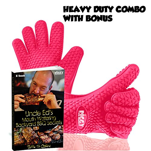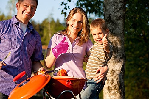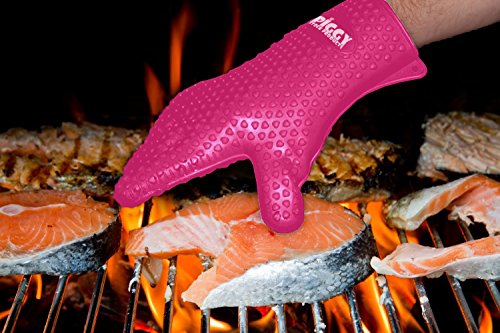 • PINK SILICONE BBQ GLOVES To PROTECT YOUR HANDS WHEN COOKING or GRILLING - While cooking barbecue, having grill gloves silicone strong gives you a comfort level that lets you cook the way you want without fear of scalding splashes or burns from meat juice or boiling hot cooking pots.