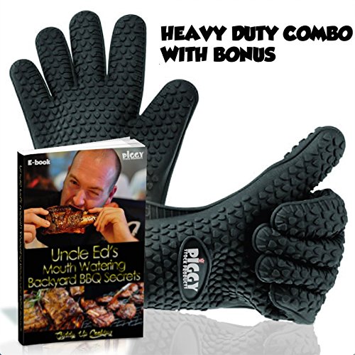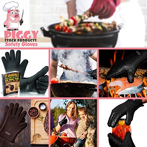 HIGHEST RATED OVEN SAFETY MITTS - GRILLING & BBQ UTENSILS - YOU CAN USE IT FOR POTHOLDERS - VERY GOOD FOR HEAT RESISTANT COOKING GLOVES WITH A FREE BBQ RECIPES EBOOK - YOU WILL LOVE THESE BLACK PAIR ECO FRIENDLY GLOVE PROTECTIVE FOR YOUR HANDS FROM BURNING!