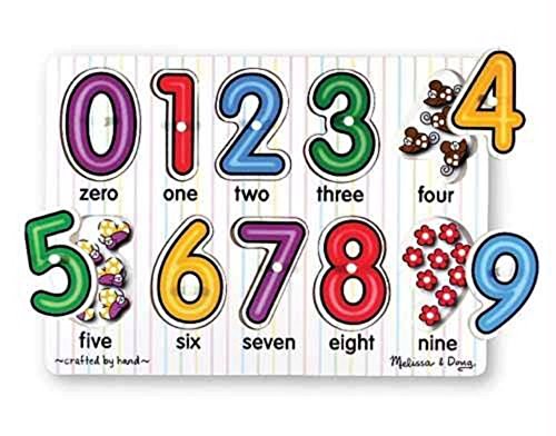 -. Binding : Toy -. Brand : Unbranded* -. EAN : 0757965276963 -. Feature : Number concepts, zero through nine, are illustrated in this 10-piece peg puzzle. A colorful picture under each piece shows the same number of items as the numeral on top of the piece, helping promote number recognition and counting skills! Encourages hand-eye, fine motor and visual perception skills. / Dimensions: 8.5" x 11.75" x 0.75" Packaged / Recommended Ages: 2+ years / Details On Sale is one Melissa and Doug Peg Puzzles- See Inside Numbers Brand New -. IsAdultProduct : 0 -. Label : na -. Manufacturer : na -. ProductGroup : Toy -. ProductTypeName : TOYS_AND_GAMES -. Publisher : na -. Studio : na -. Title : New Melissa and Doug Wood Peg Puzzles For 2+ Toddlers - See-Inside Numbers # 3273 -. UPC : 757965276963