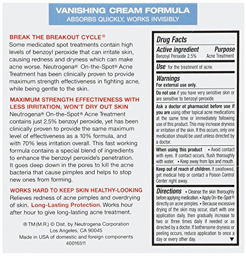 -. Title : Neutrogena On-The-Spot Acne Treatment, Vanishing Formula, 0.75 Ounce