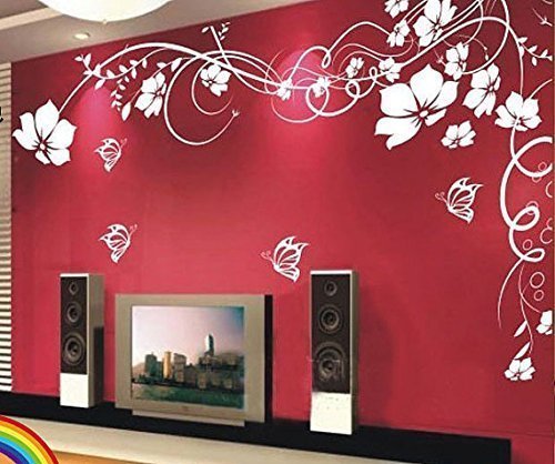 Amaonms New Style Removable White Vinyl Flowers Flower Vines Butterfly Wall Sticker Mural Decal Art for Room Tv Background Wall Corner Decorations (Left)