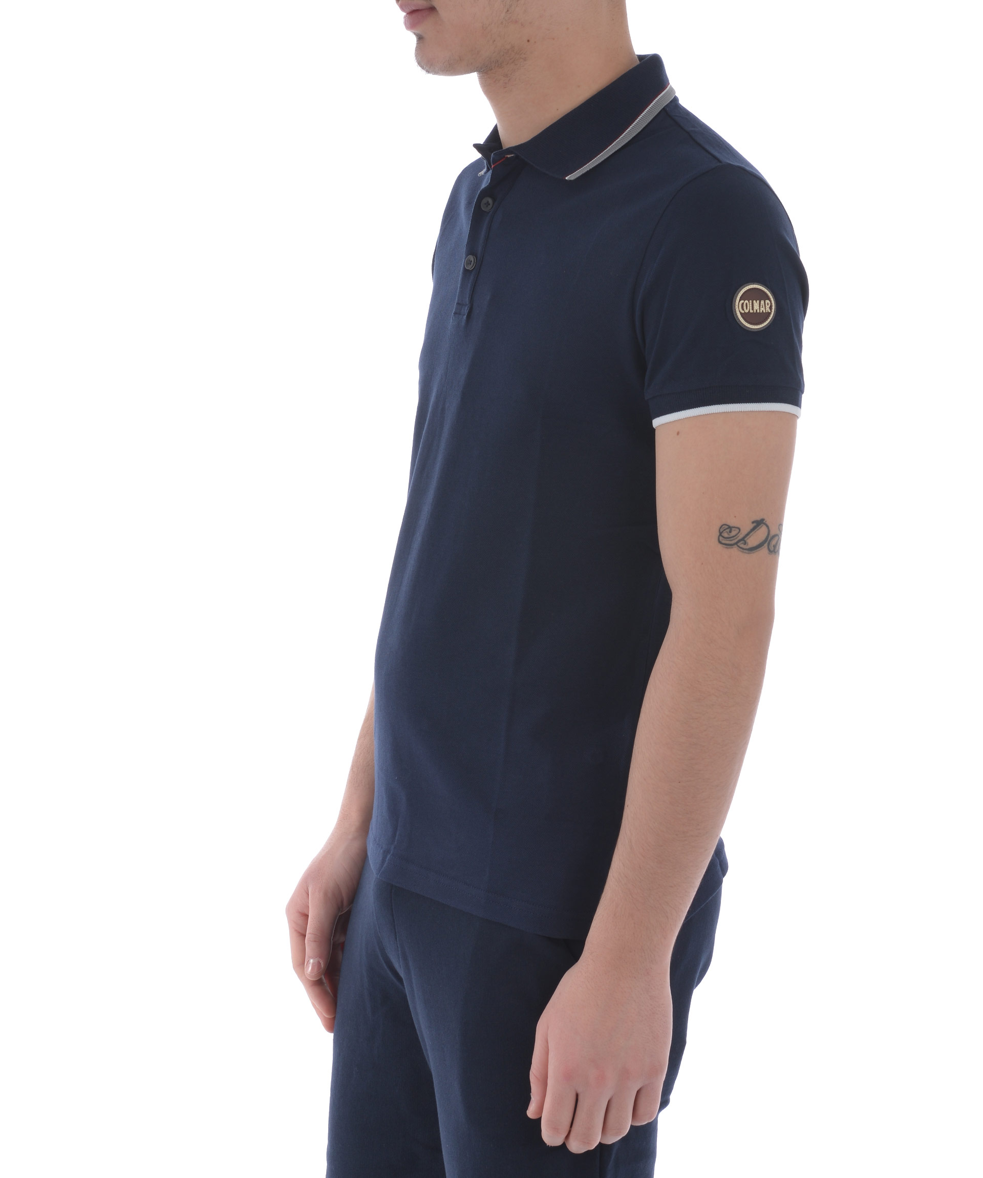 Classic Polo Shirt from Colmar: Dark Blue Classic Polo Shirt with classic collar, front button closure, short sleeves, ribbed cuffs, brand patch at sleeves and straight hem.
