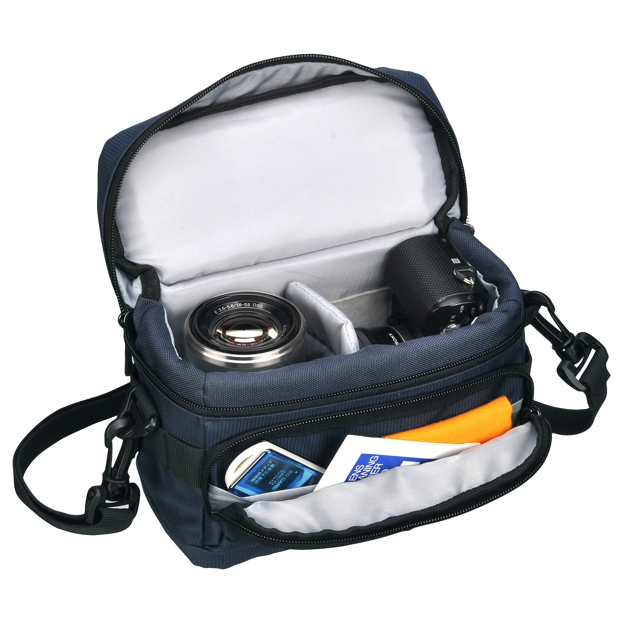 It is a size suitable for storing mirrorless single-lens camera and interchangeable lens fitted with kit lens.