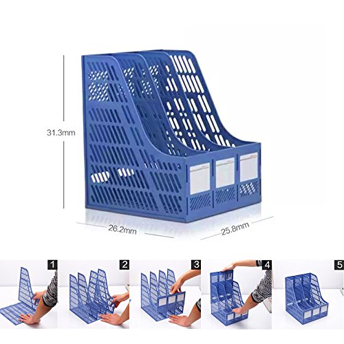 Plastic 4 Compartments File Rack Paper Holder Desktop, File Holders Organizer Box (Blue)
