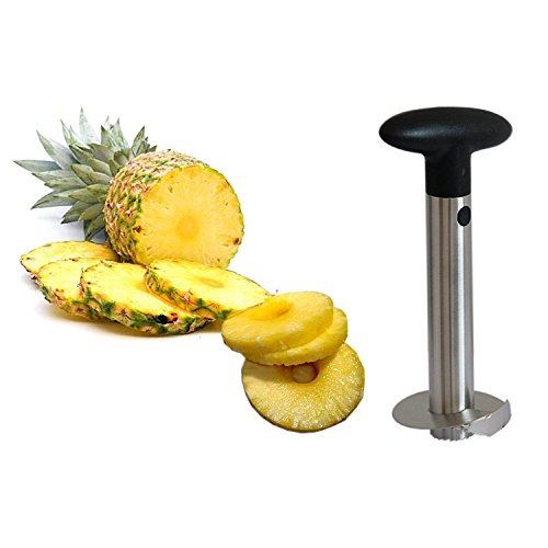 SAVE TIME: Peels, cores, and slices an entire pineapple in seconds. The handle of pineapple cutter is very durable and stylish and designed to make it incredibly easy to clean with dishwasher.
