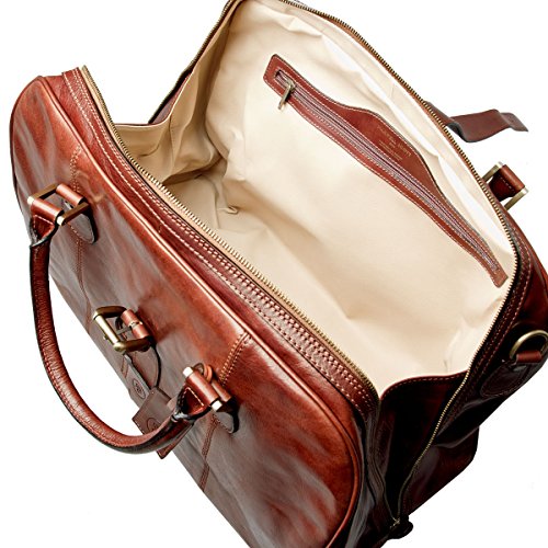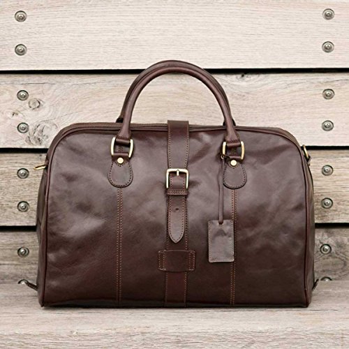 -. Feature : Elegant leather cabin bag for men! - Also comes with an 25 YEAR WARRANTY!! / Height = 35cm / 13.8 inch. Width = 50cm / 19.7 inch. Depth = 20cm / 7.9 inch. Weight = 2.0 kg. / Brass buckle strap for added security. Floor to Floor zip for wide opening. Leather side flaps to aid packing plus long zip. / Main section includes small internal zip pocket. Adjustable leather shoulder strap (detachable). / Can be Personalized / Embossed.