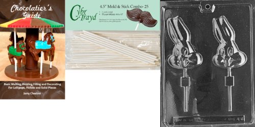 Cybrtrayd 45St25Bk-E407 'Big Tooth Bunny Lolly' Easter Chocolate Candy Mold with 25 4.5-Inch Lollipop Sticks and Chocolatier's Guide