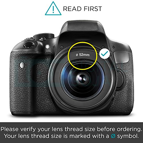 NOTE: PLEASE VERIFY YOUR CAMERA'S LENS THREAD SIZE BEFORE ORDERING. This Wide-Angle is compatible with 52MM lenses only. Lens sizes vary regardless of camera brand or model. Your camera's lens thread size will be marked somewhere on the lens barrel or printed underneath your lens cap. This number is always preceded by a ""Ø"" (diameter) symbol. For example: Ø52= 52mm lens thread size.
