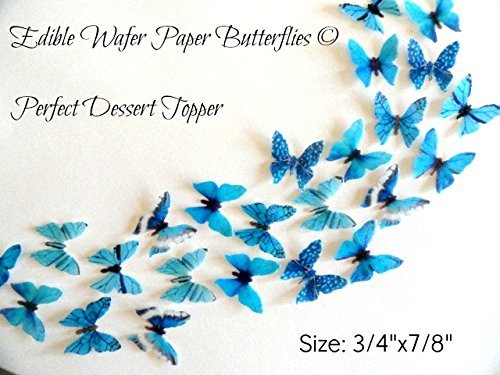 24 MINI VERY SMALL TEAL BLUE Edible Wafer Paper Butterflies© Size 3/4"X7/8" for WEDDING CAKES BIRTHDAY CUPCAKES COOKIES DESSERTS Garnish Decorations Edible Image Butterfly Cake Toppers