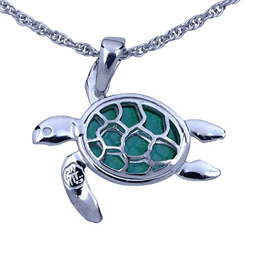 This adorable Sea Turtle necklace is the star of the Guy Harvey Artist's Collection. The process used for the Sea Turtle is known as Plique-à-jour which is French for "letting in daylight". It is a vitreous enameling technique where the enamel is applied in openings like stained glass. The turtle's eye is made with a White Topaz gemstone. The pendant comes complete with a sterling silver chain that adjusts from 16 to 18 inches. Each piece comes with a numbered certificate of authenticity and gift pouch. Turtle is 1 inch x 1 inch.Feature