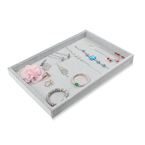 Bocar BOCAR Grey Velvet Jewelry Display Showcase Organizer Holder for Necklace Bracelet Ring Earring