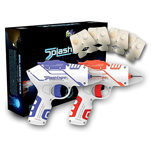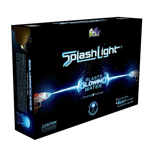 Studio : BioToy LLC Publisher : BioToy LLC Binding : Toy Product Description The SplashLight is the world's first water blaster that blasts bioluminescent glowing water! With the SplashLight and our special bioluminescent fuel that we call a ReLume (included in the box) all you have to do is add water to be able to blast water that lights up on its own. The two natural ingredients of the ReLume are easily loaded into the 2 chambers of the SplashLight. The ingredients are kept separate, when you pull the trigger the water from each side comes together producing an amazing and bright bioluminescent reaction. This is inspired by bioluminescence found in nature and this toy is our way to help bring the wonder of natural light to your backyard. 0