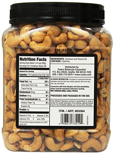 Kirkland Signature Kirkland Signature Unsalted Cashews, 2.5 Pound (Pack of 2)