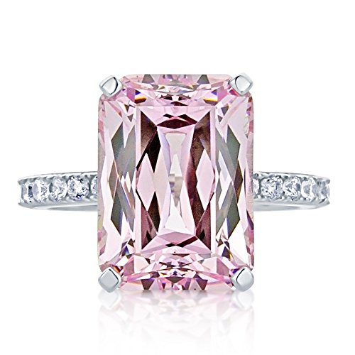 -. Title : Sterling Silver Emerald Cut 8.5ct Super Light Pink CZ Cocktail Ring 13MM (Size 5 to 10)