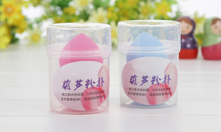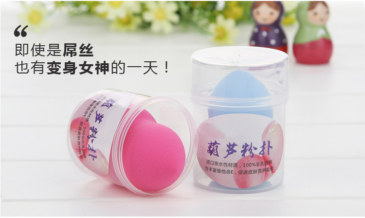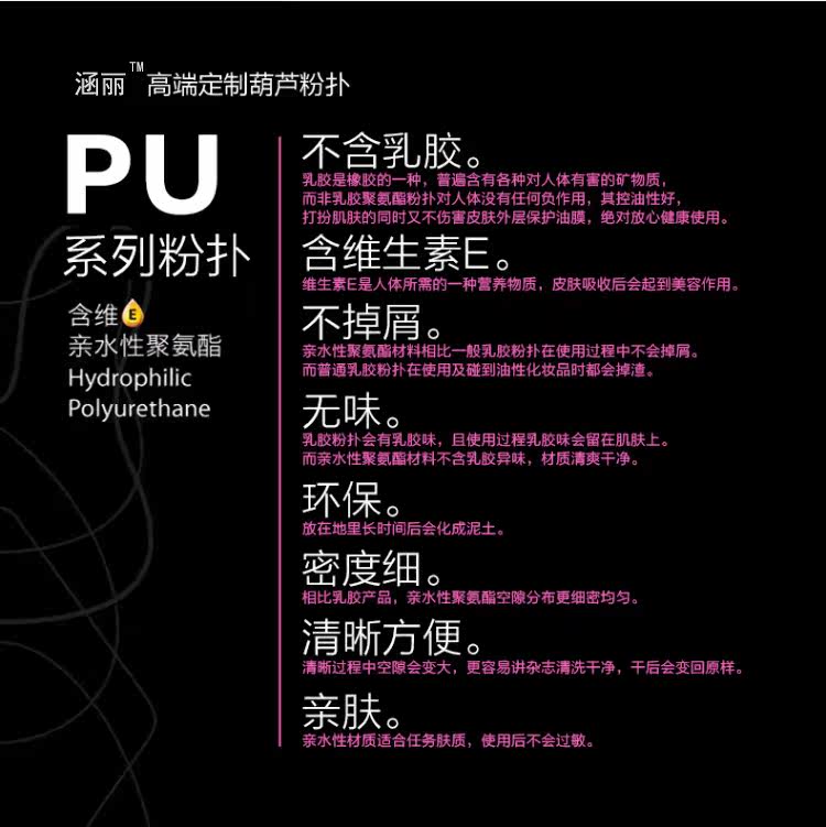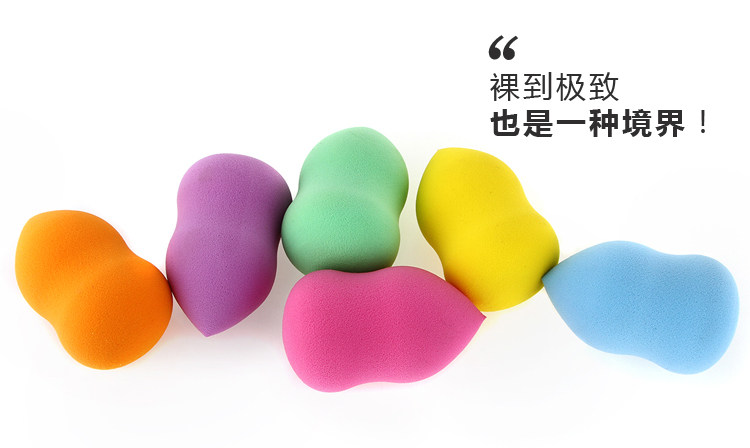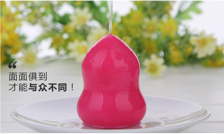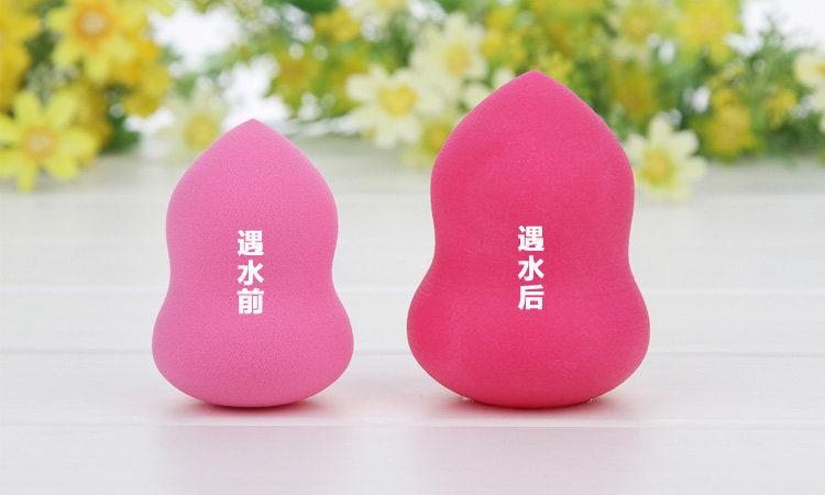 此款葫芦粉扑采用的是进口亲水性材质,质地相当细腻,可以干湿两用: