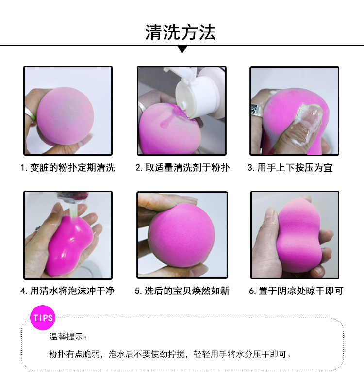 由于底妆产品含油量较高(尤其是粉底液和粉霜),粉扑上残留过多粉底容易滋生细菌,影响肌肤健康。因此粉扑需要定期清洗和更换,7天清洗一次最佳!