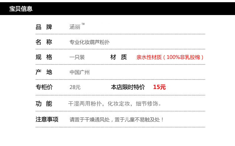 ①本店采用进口清水性材质制作的粉扑可以干湿两用,使用液状粉底前,将化妆绵用水湿润拧干,达到最佳效果。