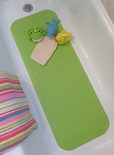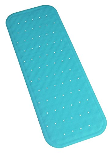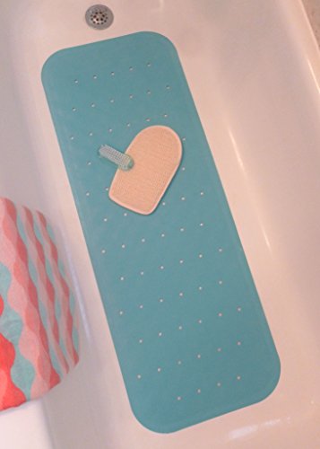 -. Brand : Simple Lines Company -. Feature : ALL NATURAL MATERIAL: The bath mat is environmentally friendly and made of All Natural Rubber. It is Non-toxic and BPA-Free, which makes it safe for the whole family. The mat is also PVC Free and NO PVC means NO strong and lingering unpleasant odors. All natural rubber is also softer and less slippery than vinyl. Recyclable. / COMFORT: Drainage holes provide fast water runoff so you are not standing in a puddle of water and the textured surface is soft and comfy while sitting in the tub. / EASY CARE: The bath mat can be surface cleaned and/or machine washed. -. Label : Simple Lines Company -. Manufacturer : Simple Lines Company -. MPN : M090 -. PartNumber : M090 -. ProductGroup : Home -. ProductTypeName : HOME_BED_AND_BATH -. Publisher : Simple Lines Company -. Size : 38"L x 14"W -. Studio : Simple Lines Company -. Title : Bath Mat - Non-Slip Natural Rubber - PVC FREE - Extra Long Bath Mat - Safe Secure Non Skid Surface for Baby, Kids and Elderly - Choose from White, Blue, Green and Natural -. Warranty : CAUTIONS: May not adhere securely to uneven or textured surfaces. Never leave children unattended in the bath.