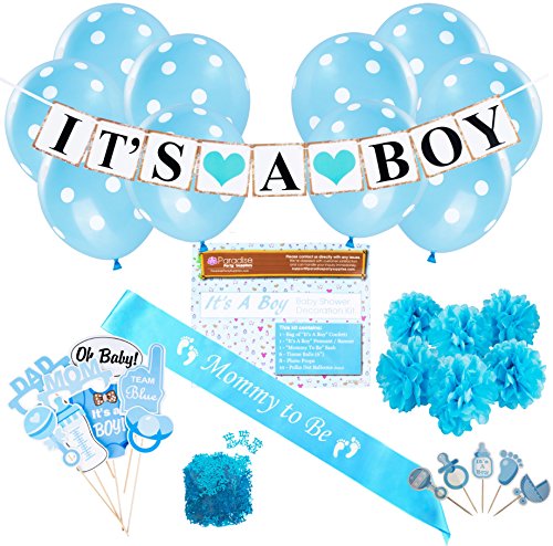 Baby Shower Party Decorations Kit: It's A Boy Blue Theme Welcome Supplies for Babies & Newborns With Confetti, Pennant Banner, Mommy To...