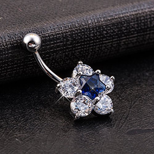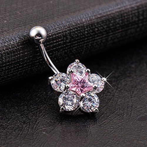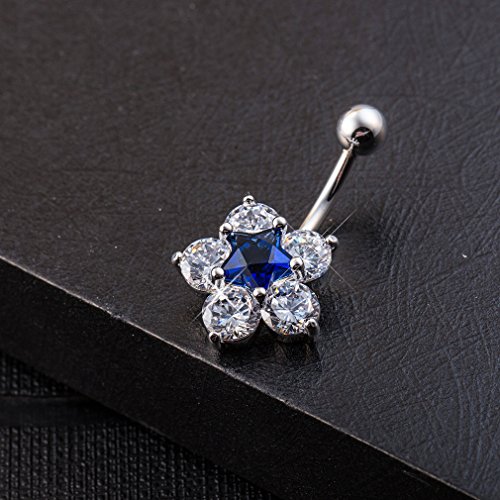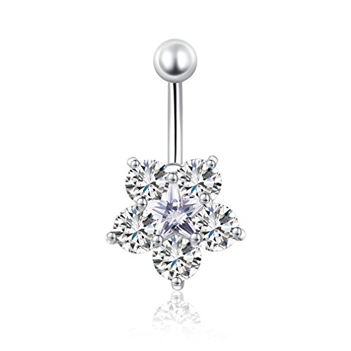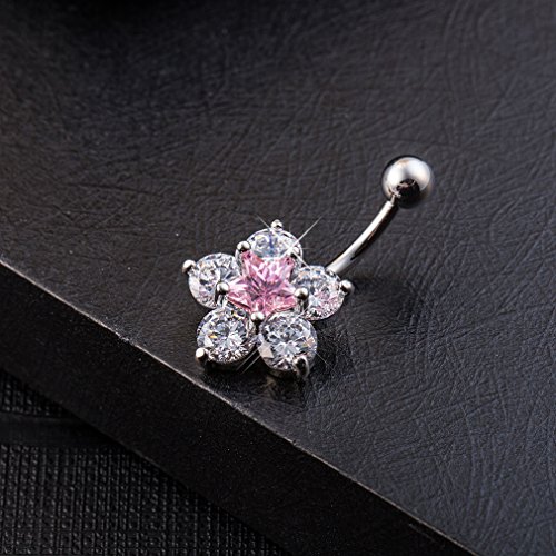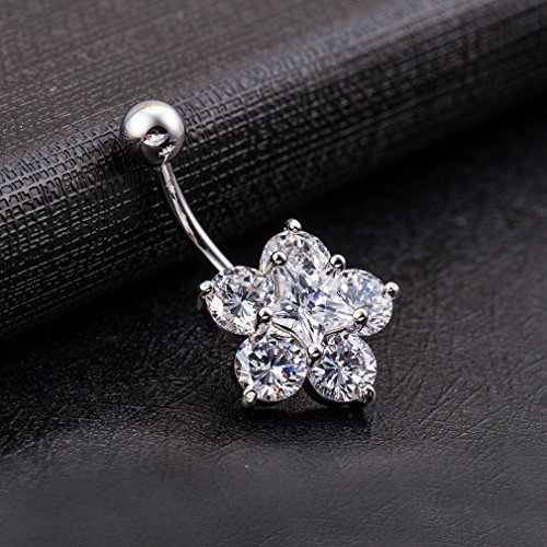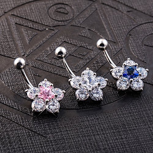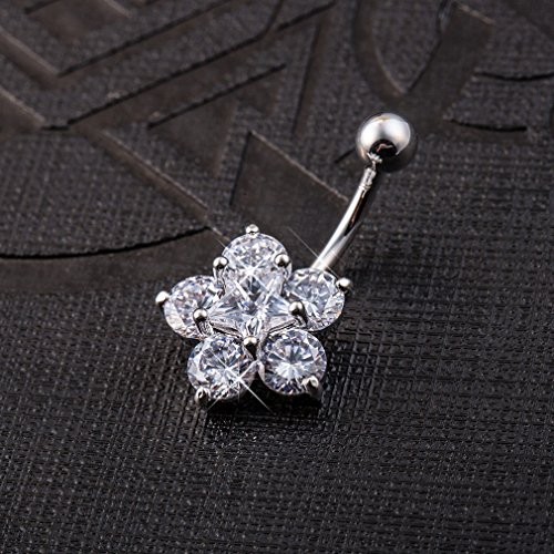 KIMING New Belly Button Rings Crystal Rhinestone Flower Jewelry Navel Bar Body Piercing