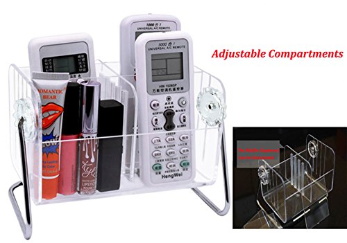 TV Remote Control Holder Organizer BQeel Acrylic Media Storage 6 Adjustable Compartments TV Remote Caddy - Holds up to 6 Remotes
