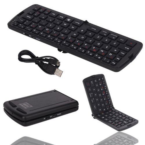-. Feature : Folds out to a compact keyboard great with all Bluetooth-enabled phones including smartphones, iPhones, iPads, tablets, Android devices such as the Galaxy and Note, MP3 players, smart TV, etc. / No longer use an annoying touchscreen keypad and use this perfect-for-travel keyboard for quick and easy typing / Rechargeable via standard USB; no need to buy batteries / Super mini folds to 5" (12.7 cm) for easy transport; even small enough to fit in some pockets; when opened to full size it is 10" (25.4cm) / QWERTY design makes it feel like you are just on a normal PC computer for fast typing assistance