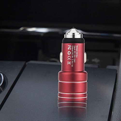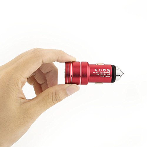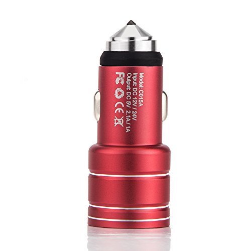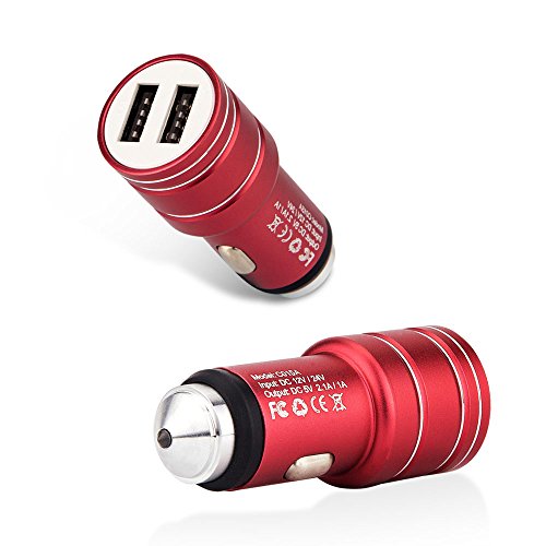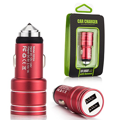 Multi-Function Car Charger, Areion Blue LED Dual USB Port 2.4A Output Adapter Charger with Safety Emergency Escape Hammer for iPhone X/8/7/6s/ Plus/iPad Pro/Air 2, Galaxy S7 / S6 / Edge / Plus, and More