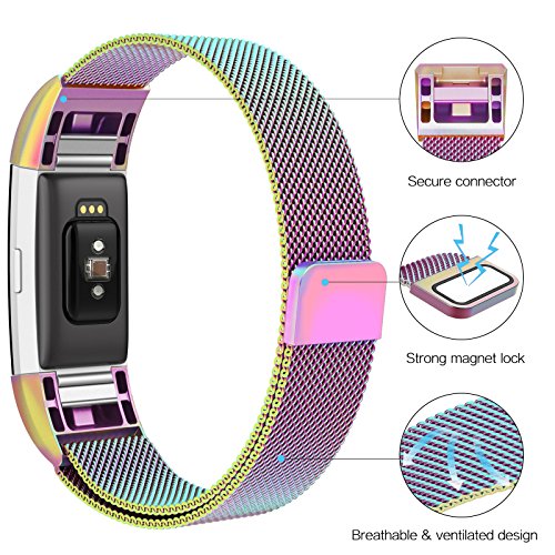 This fitbit charge 2 replacement bands is made of premium stainless steel metal, the milanese loop mesh watch band is flexible and adjustable, comfortable for day to day wear.