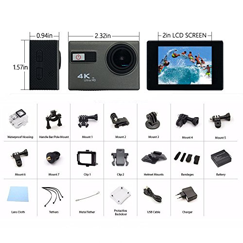 - Professional HD Action Camera: Built-in 2.0 inches high definition LCD screen that display photos and replay videos recorded. With 4K 1080P 30fps high resolution video, you can record wonderful memory, with 12MP photos, you can capture unforgettable moments
