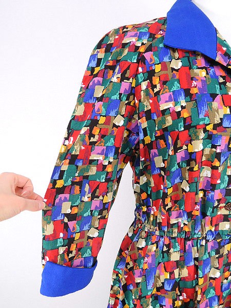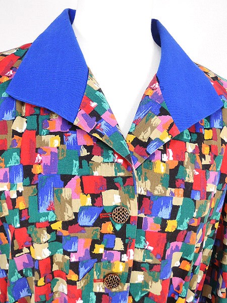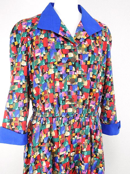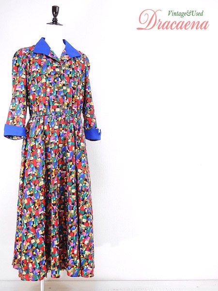 Ladies ブランド- カラーカラフル・青 メール便不可 コンディション★★★ 素材ポリエステル・レーヨン 表記サイズ10 実寸サイズ 着丈 126 cm 身幅 51 cm 袖丈 57 cmラグラン袖の為、襟元から袖先までの計測 ウエスト 68cm 〜 98cm (27インチ〜38.5インチ) ※ウエスト・ヒップ以外は平置き採寸【code】#d