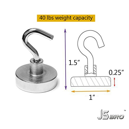 5 Set JSbro (40 lbs. ea. vertically) | Neodymium Magnetic Hooks