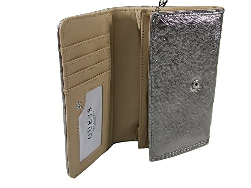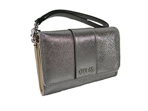 Product Description Metallic gunmetal exterior with silver hardware. It measures 6 1/2 inches by approximately 4 inches. ?The interior contains a cell phone pocket, an ID window 3 credit card slots, and zip pocket with 2 sections. The wrist strap is detachable. Tag Information: Style No.:? EE509242 Name:? Ware Slg Color: Gunmetal 0