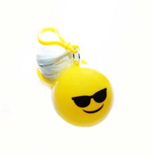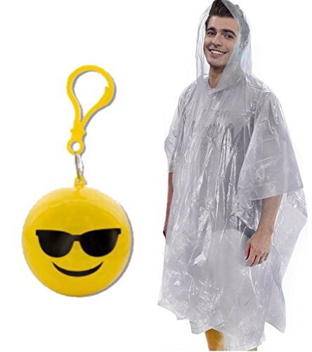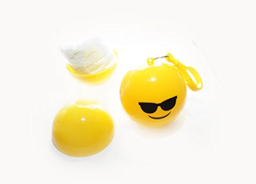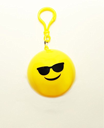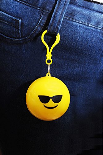 Emergency Sunglasses Smiley Emoji Rain Poncho with Hood Packaged in Plastic Keychain Ball for Womens Mens Children (One Size Fits All) Backpacking Camping Hiking Outdoor Sporting Travel Essenti