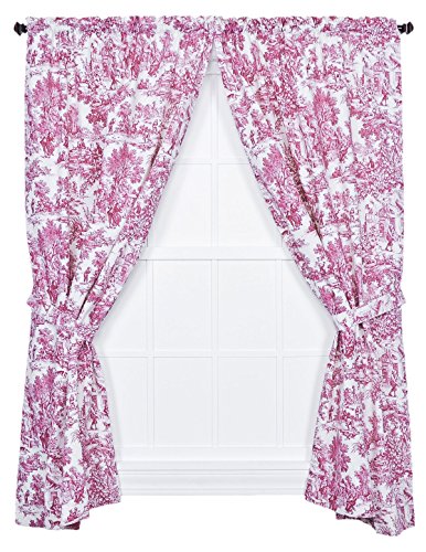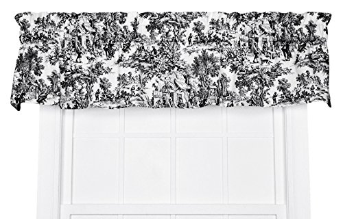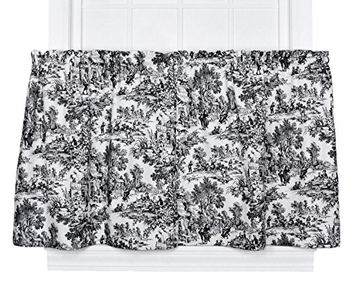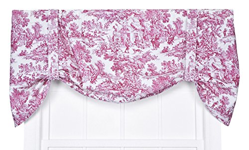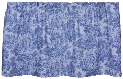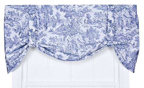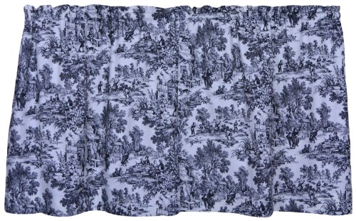 Victoria Park Toile Tie-up Valance--Toile print fabric originated in France in the 18th century and immediately became a popular decorating pattern that still holds true today. The classic country scenes and soft cotton fabric will change and improve the look and feel of any room while adding a touch of style. Made with 100% cotton creates a smooth draping effect and softer texture that some times can't be achieved with inferior synthetic fabrics. You are sure to get a curtain that’s beautiful and functional in a decorating pattern that's timeless and long lasting. The Tie-up is a one piece valance with two strap ties sewn into the heading for easy hanging. It is made with a decorative 3 inch rod pocket. It Measures 60 inches wide and will accommodate approximately 30 - 45 inches of window width. Length is measured overall 24 inches from header top to bottom of panel. Tie-up valances can be combined with coordinating Victoria Park Toile Tailored Tier Curtains and Tailored Pair Drape Panels with Tiebacks that are also available thru Amazon. Also available are matching Tailored Tier Curtains, Tailored Pair Drape Panels with Tiebacks, Chair Pads, Throw Pillows, Shower Curtain, Bed Comforters and Shams. Made in the USA, Dry clean onlyFeature