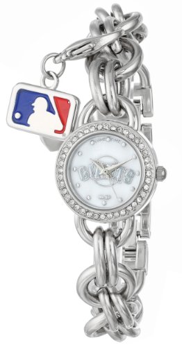 Show your support for your favorite Major League Baseball team with the officially-licensed team logo, The Charm Watch has a stainless steel case back and Japan Quartz movement. The watch band is an alloy silver tone with adjustable links, the bracelet length is 8.0 inches and comes with 4 removable league charms and the face is stylized with beautiful stones around the entire circumference of the round bezel. It is Water resistant to 3ATM (99 ft.) and comes with a limited lifetime warranty.