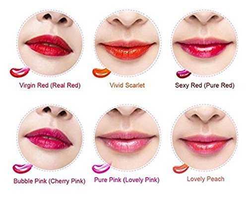 -. Feature : Natural lip tint pack with unique formula. / Tint pack that does not smudge at all. / Turns your lip color in beautiful color within 5~10 minutes. / For All Skin Types / 6 kinds of various colors, and Jumbo volume of 15g!