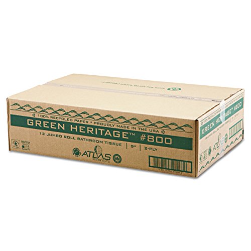 Atlas Paper Mills 800GREEN Green Heritage Jumbo Junior Roll Toilet Tissue, 2-Ply, 9 inches dia