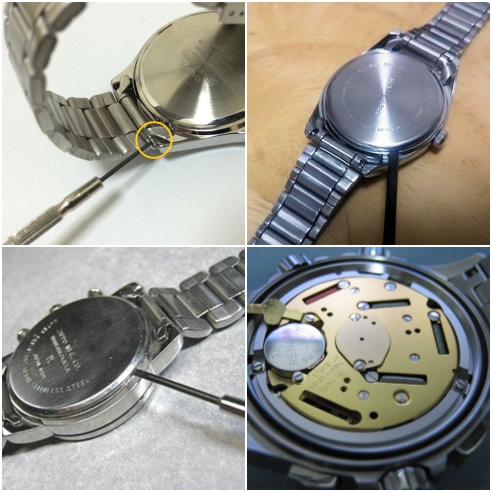 For band adjustment of the wristwatch, detaching of screws for battery fastening, installation.