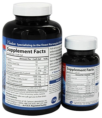 Carlson Labs - The Very Finest Norwegian Fish Oil Omega-3's DHA & EPA Lemon Flavored 1000 mg. - Bonus Pack 120 + 30 Softgels