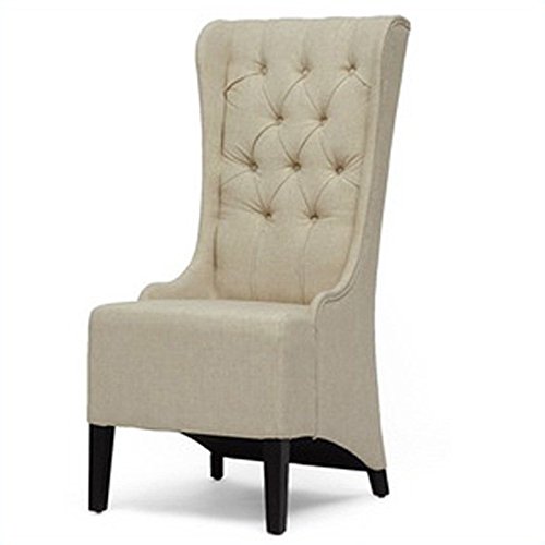 Studio : Wholesale Interiors -- DROPSHIP Publisher : Wholesale Interiors -- DROPSHIP Binding : Kitchen Product Description Traditional button tufting and neutral beige linen upholstery paired with a unique extra tall backrest make this otherwise classic design a modern force to be reckoned with. The resulting style screams luxury and designer inspiration but without the unapproachable price tag. The modern accent chair, which befits a classy lounge or living room alike, is built on a birch wood frame with black legs and foam cushioning. The fully assembled Vincent Chair is made in China and should be spot cleaned. A matching loveseat is also available (sold separately). product dimension: 21.25"Wx23"Dx47.25"H, seat dimension: 21.25"Wx18"Dx20"H. 0