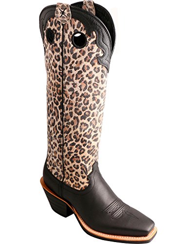 Studio : Twisted X Publisher : Twisted X Binding : Apparel Product Description The latest technology and modern designs are just a couple of reasons Twisted X boots are a great fit for you. These fashionable, yet durable Buckaroo Cowgirl Boots are designed for the working cowgirl and are made from genuine leather with a stylish leopard print 16" shaft design. Bonded welt construction and long base heels make these boots ready for serious work in the field or lot. These striking women's western boots are also built to be comfortable and moisture-wicking Twisted X Technology Cowboy Comfort footbeds. Look awesome when you step out onto the ranch in these Twisted X Cowboy Boots. 0