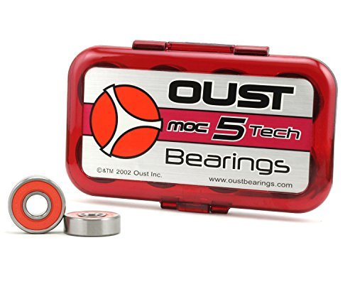 Studio : Oust Inc. Publisher : Oust Inc. Product Description The Oust Moc 5 Tech Bearing was designed to handle the rigors and abuse in technical street skating, hard impacts from big street tricks, and heavy loads from downhill slides or drifting. Some of the roughest street skateboarding is reached during huge ollie's, blunts slides, grinds, and various demanding technical tricks. Downhill skateboarding applies tremendous axial and torsional loads while a board is in a turn or slide. To maximize the strength of the MOC 5 Tech bearing, a high strength carbon steel ball cage is used in place of a nylon ball retainer, which bends and breaks much easier. This cage ensures the ball placement stays aligned in the harshest skating conditions and extends the bearing life for thousands of skating hours. The MOC 5 Tech Bearing is manufactured with the same high precision specifications as the MOC 7 Speed bearings. The MOC 5 Tech bearing has two removable buna rubber seals for proper bearing protection, and to provide better service for the bearing when the seals are removed. Higher quality than Swiss Bearings. These bearings are proudly made in the U.S.A. 0