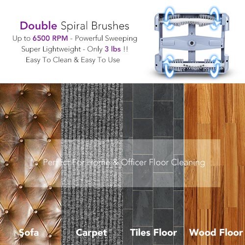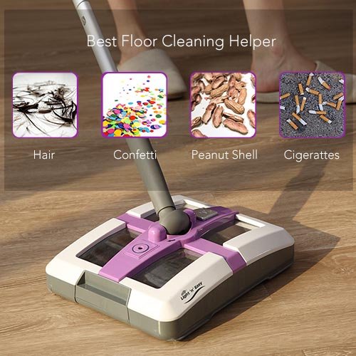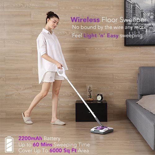 Electric Sweeper Broom - Rechargeable Sweeper Broom Cordless Floor Sweeper w/ Ergonomic Handle & Double Powerful Brushes, Up to 60 Minutes Working Time, Electric Broom Perfect for Home Office Cleaning