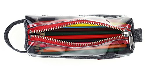 Rough Enough Premium Cotton And ECO Clear Transparent Material Cylindrical Tool Pencil Case Cosmetic Makeup Holder Stationery Pouch Bag
